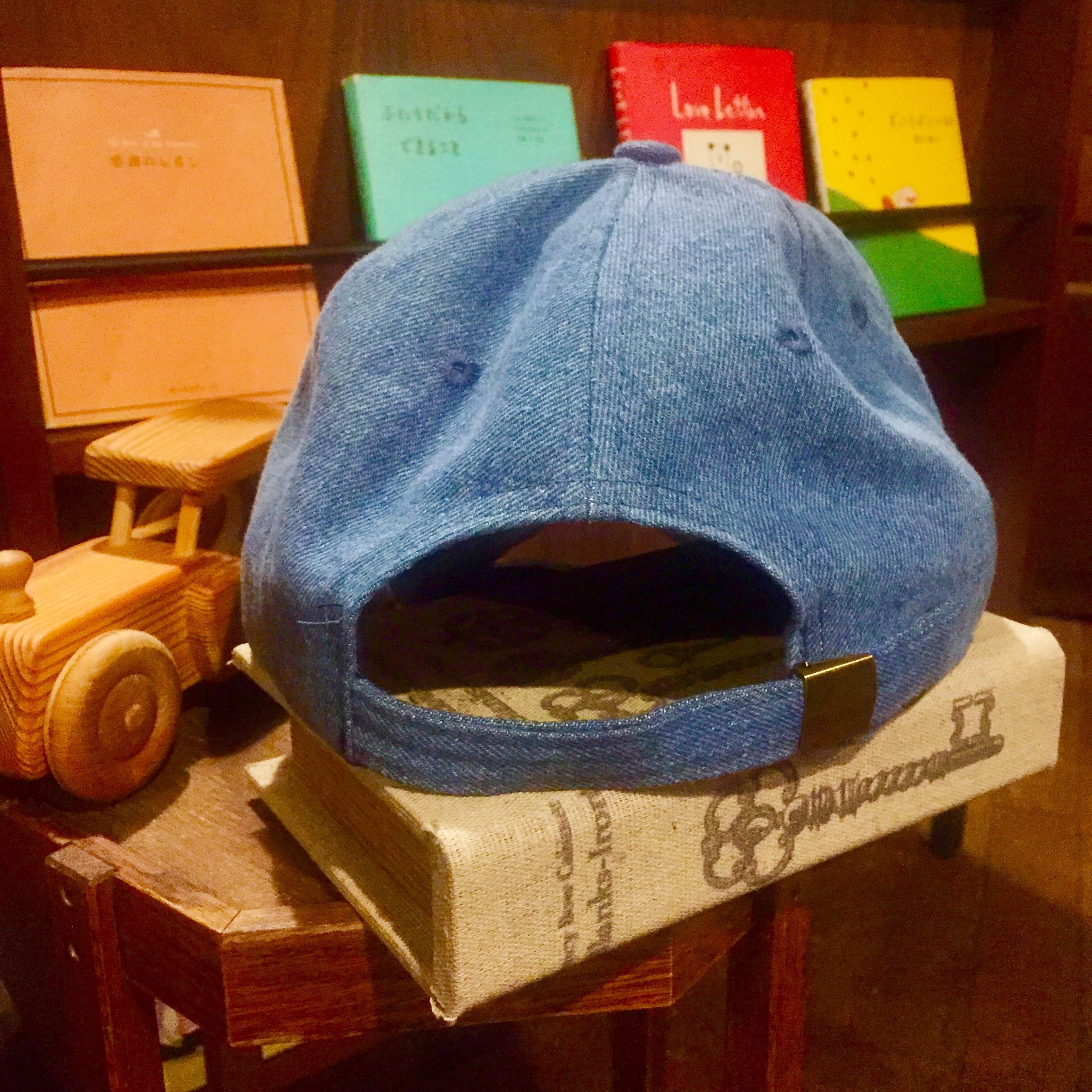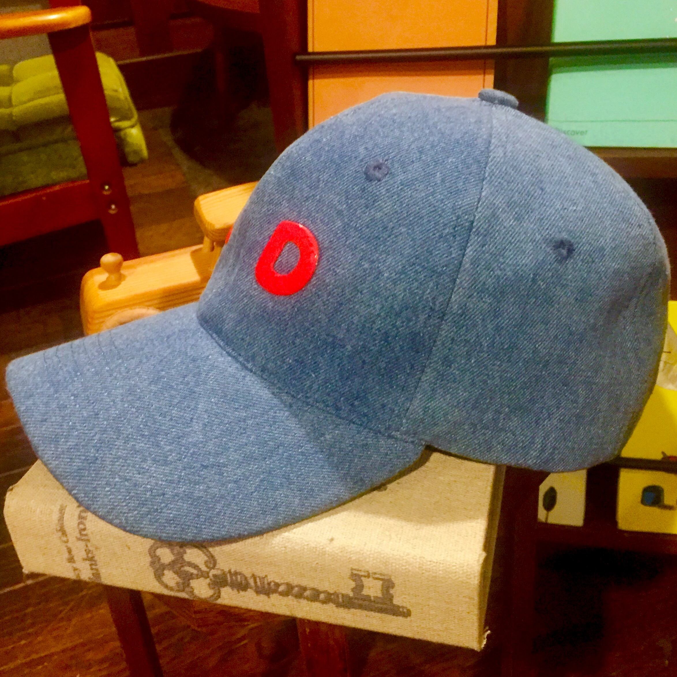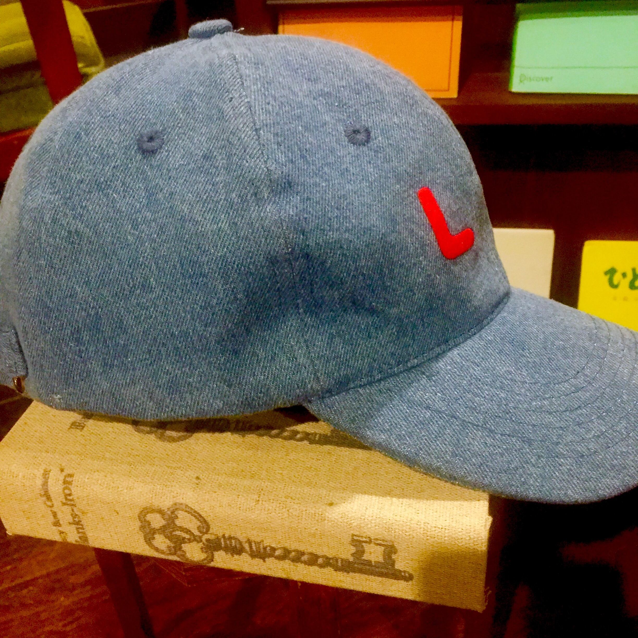ビンテージ感のあるウォッシュドブルーのデニムキャップにLとDの赤ロゴが薄いフェルトワッペンで入っています。